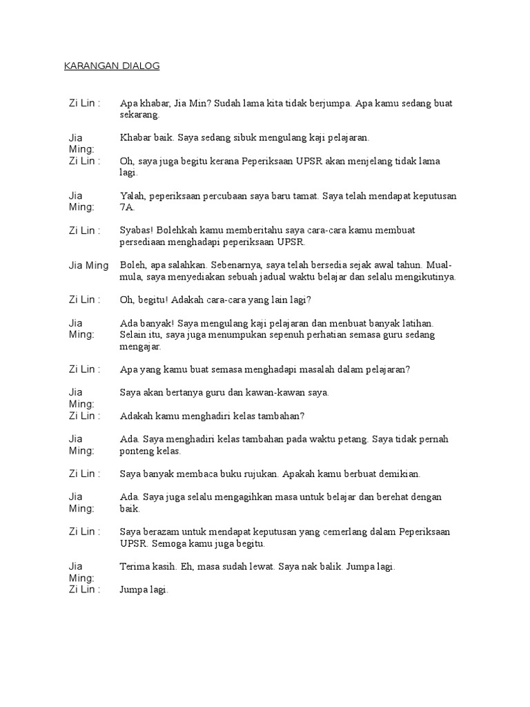 Karangan Dialog Pt3 Bahasa Melayu Contoh Terbaik