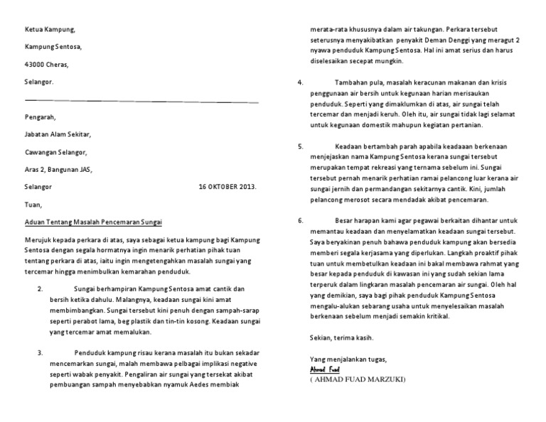 Contoh Surat Rasmi Aduan Pencemaran Sungai Resepi Book C