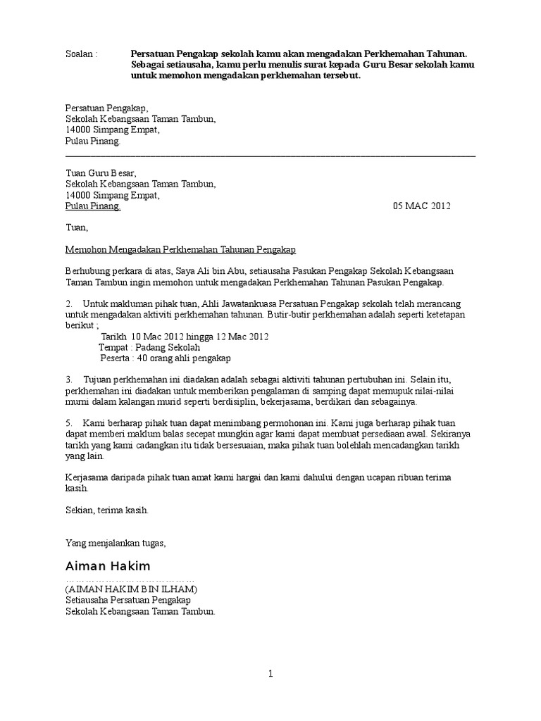 Surat Tidak Rasmi Aktiviti Cuti Sekolah Surasmi G