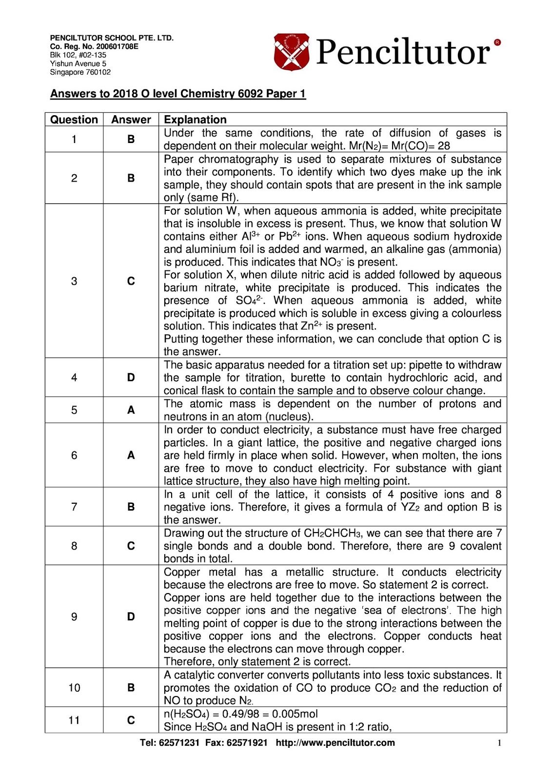Penciltutor S Answers To 2019 O Level Papers