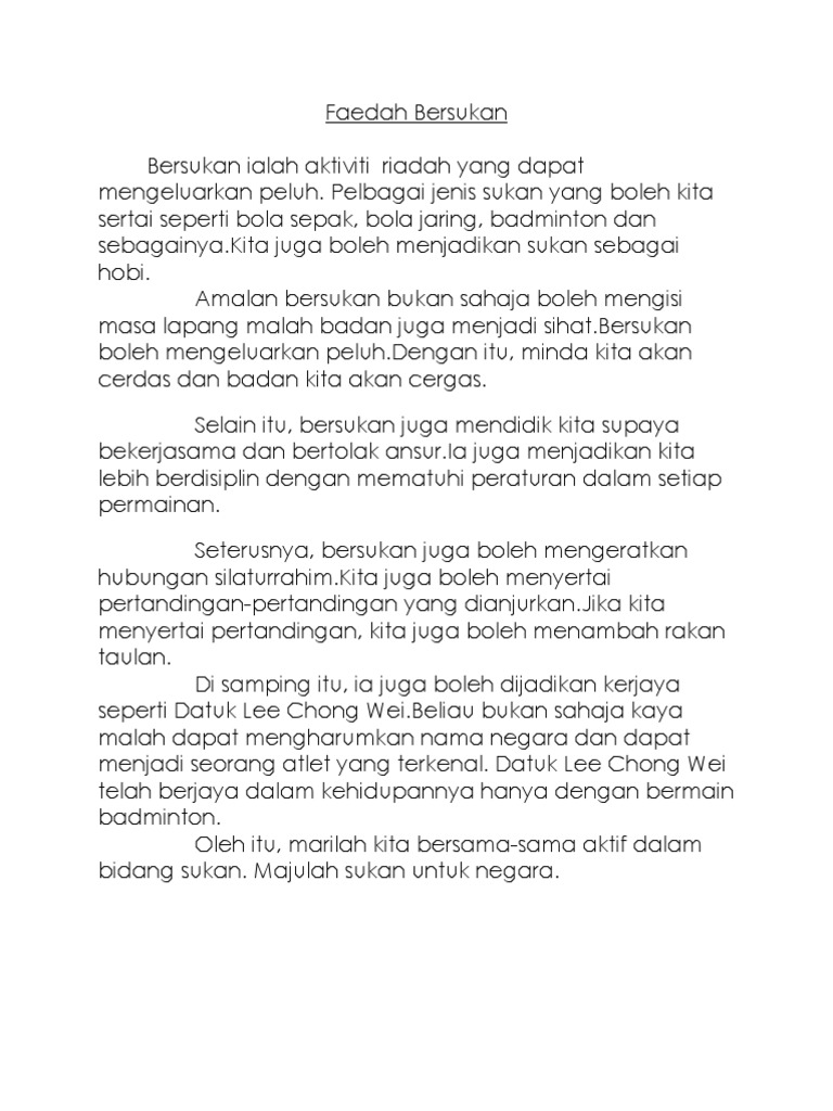 Karangan Kebaikan Bersukan Docx Faedah Bersukan Bersukan Merupakan Aktiviti Yang Dapat Mengeluarkan Peluh Daripada Tubuh Badan Kita Malah Kerajaan Course Hero