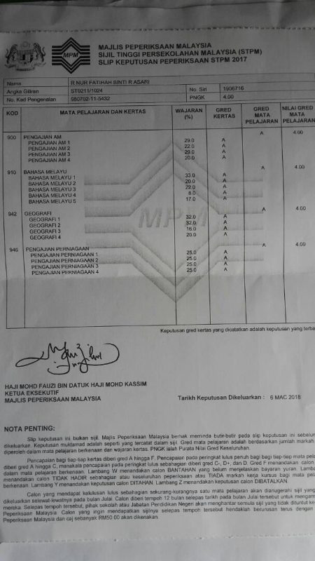 My Result For Stpm 2017 Update