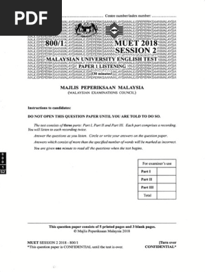 Muet 2018 Session 1 Paper 3 Reading Part 2 Samakaiden