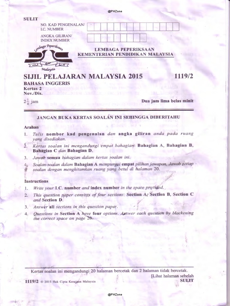 Mphonline Kertas Soalan Peperiksaan Sebenar Spm Bahasa Inggeris 2011 2017